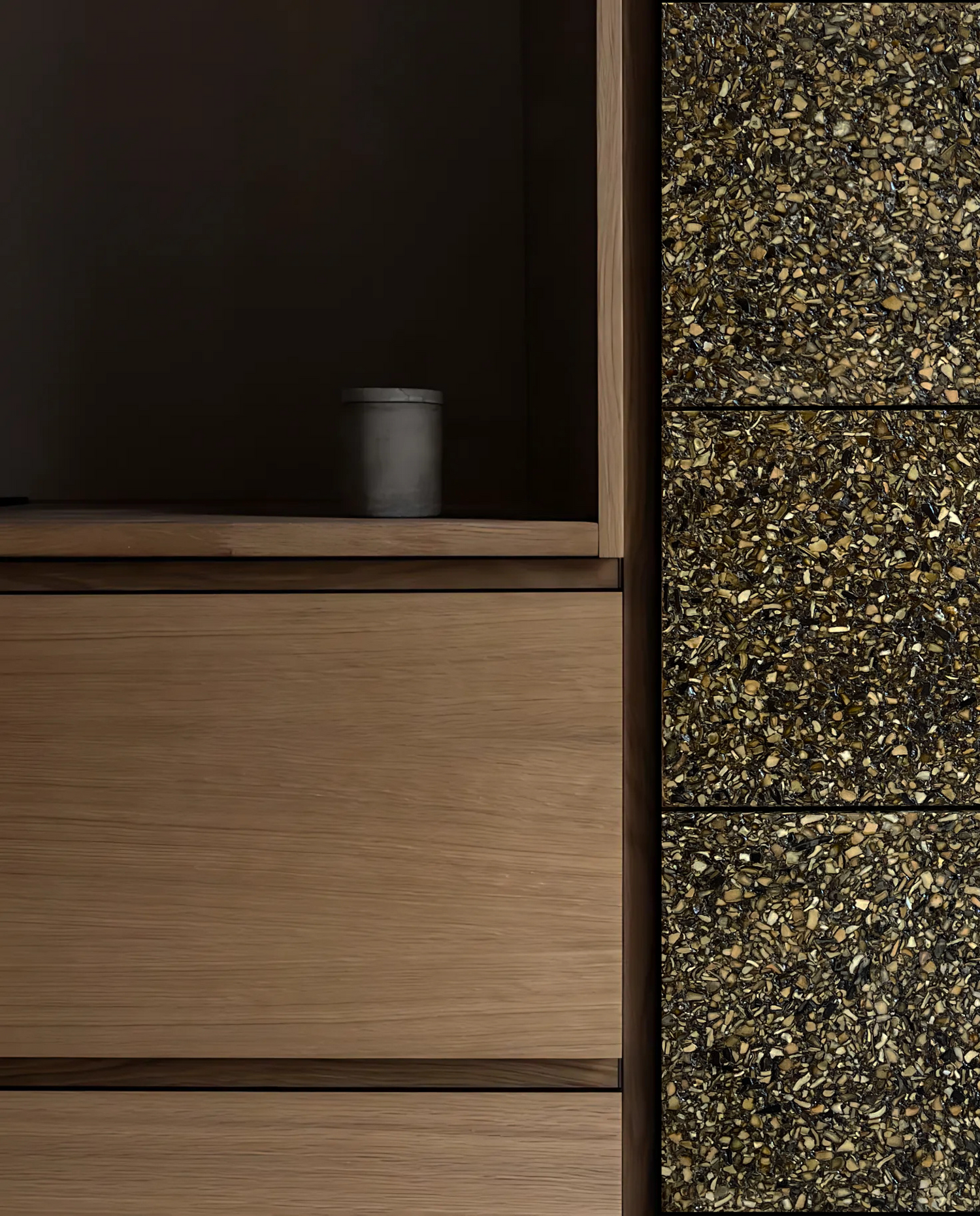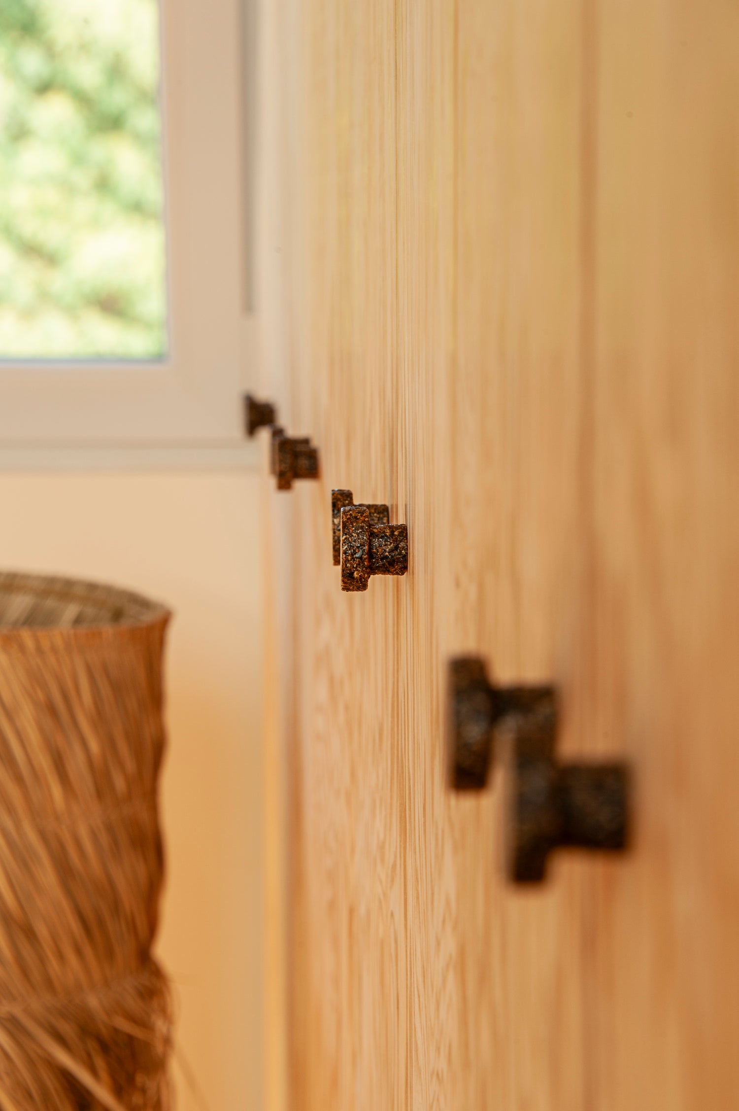 Production de boutons de meubles pour les détails d'agencement d'un lieu privé afin de créer un contraste et une harmonie avec l'agencement en bois.